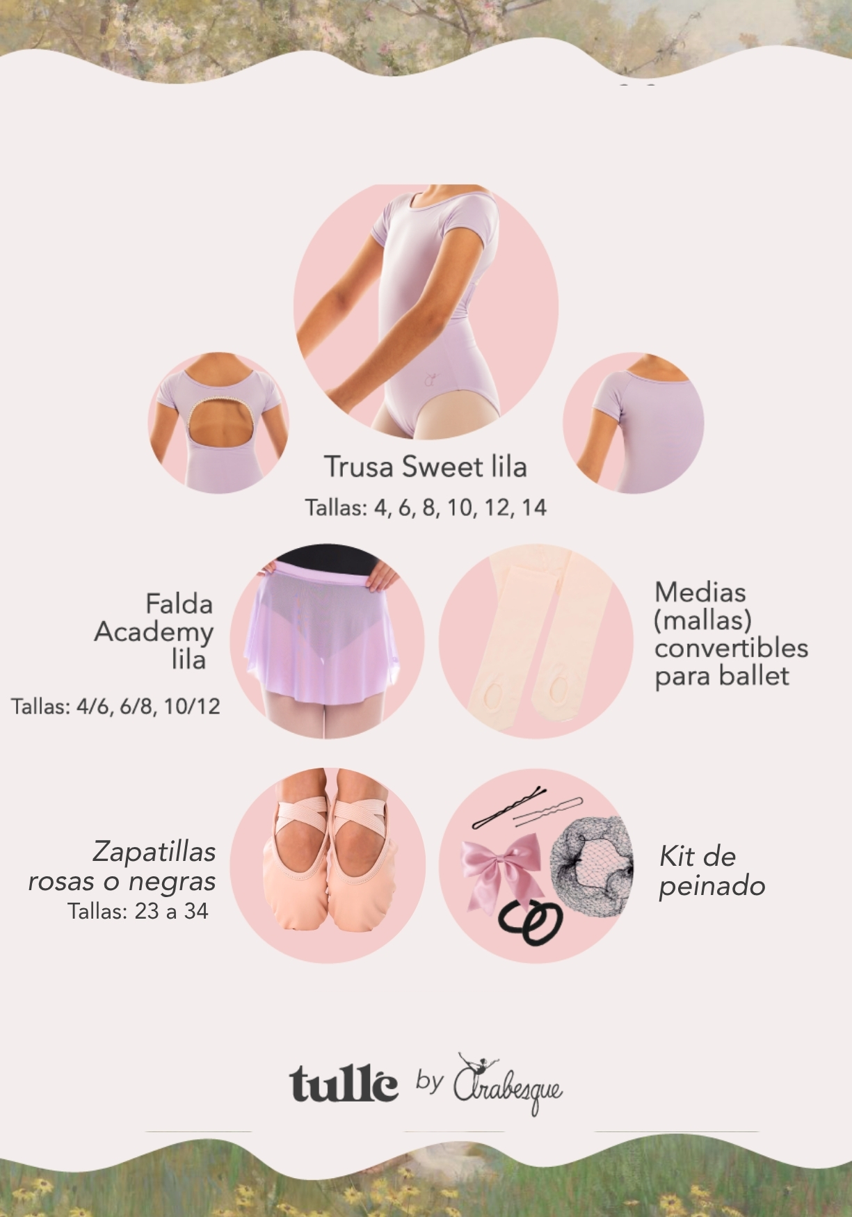 Escríbenos al WhatsApp 3052398125 para asesorarte con las tallas de tu pequeña para la trusa, medias y zapatillas.